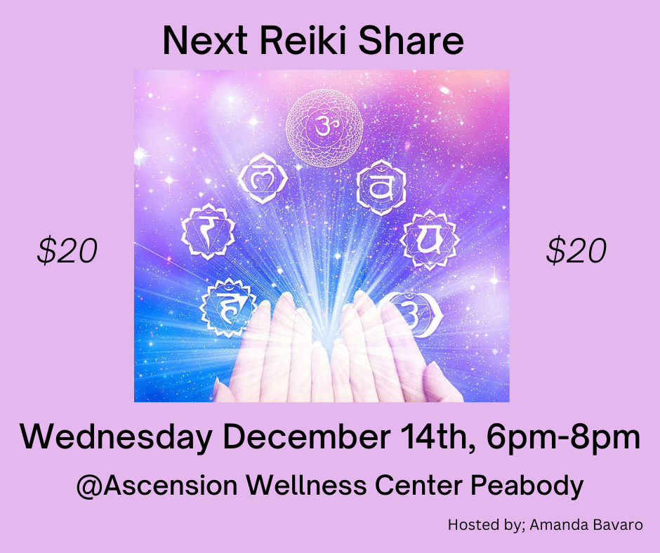Our Reiki Share has moved to Ascension Wellness Center as well!